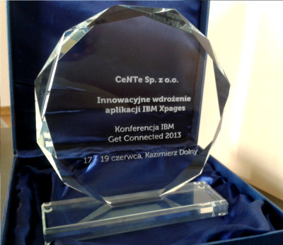 zostaliśmy nagrodzeni za innowacyjne rozwiązanie i wdrożenie aplikacji w środowisku IBM Xpages.